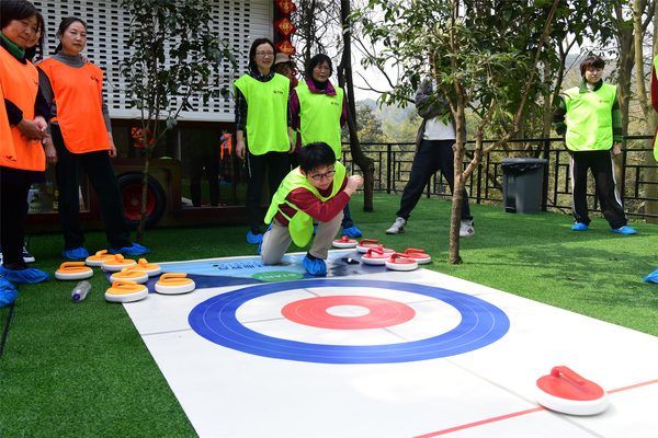 紧接着进行的破冰组队、妙笔生花、旱地冰壶一系列游戏让老师们在青山绿水的怀抱中畅快淋漓,在阳光下笑颜如花。特别是旱地冰壶更让老师们体检了一把冬奥会的紧张和刺激,在教练的指引下,从没有接触过冰壶的老师们迅速的进入状态,通过各自的战术配合,让自己的团队脱颖而出,两支kaiyun官方网站手机版女神冰壶队实力均不容小觑。