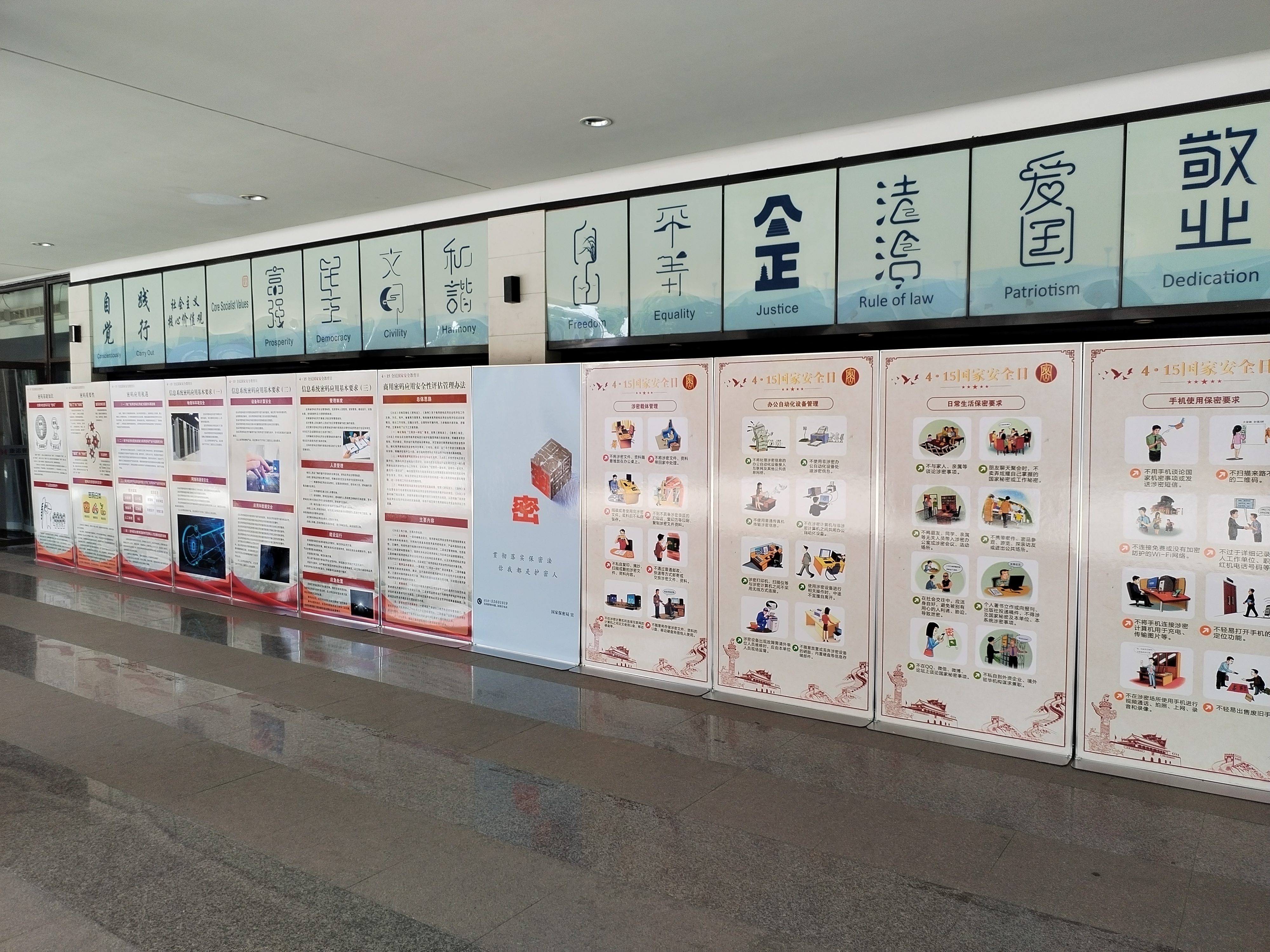二是宣传资料进校园,营造良好的宣传氛围。2024年4月中下旬,越城区国家保密局主动在学校图书馆和食堂门口摆放保密宣传展板(由越城区国家保密局提供),学校也并通过学校公共区域内电子屏幕,滚动播放保密宣传视频(公开版),展板和视频吸引了不少师生围观,保密宣传取得良好效果。