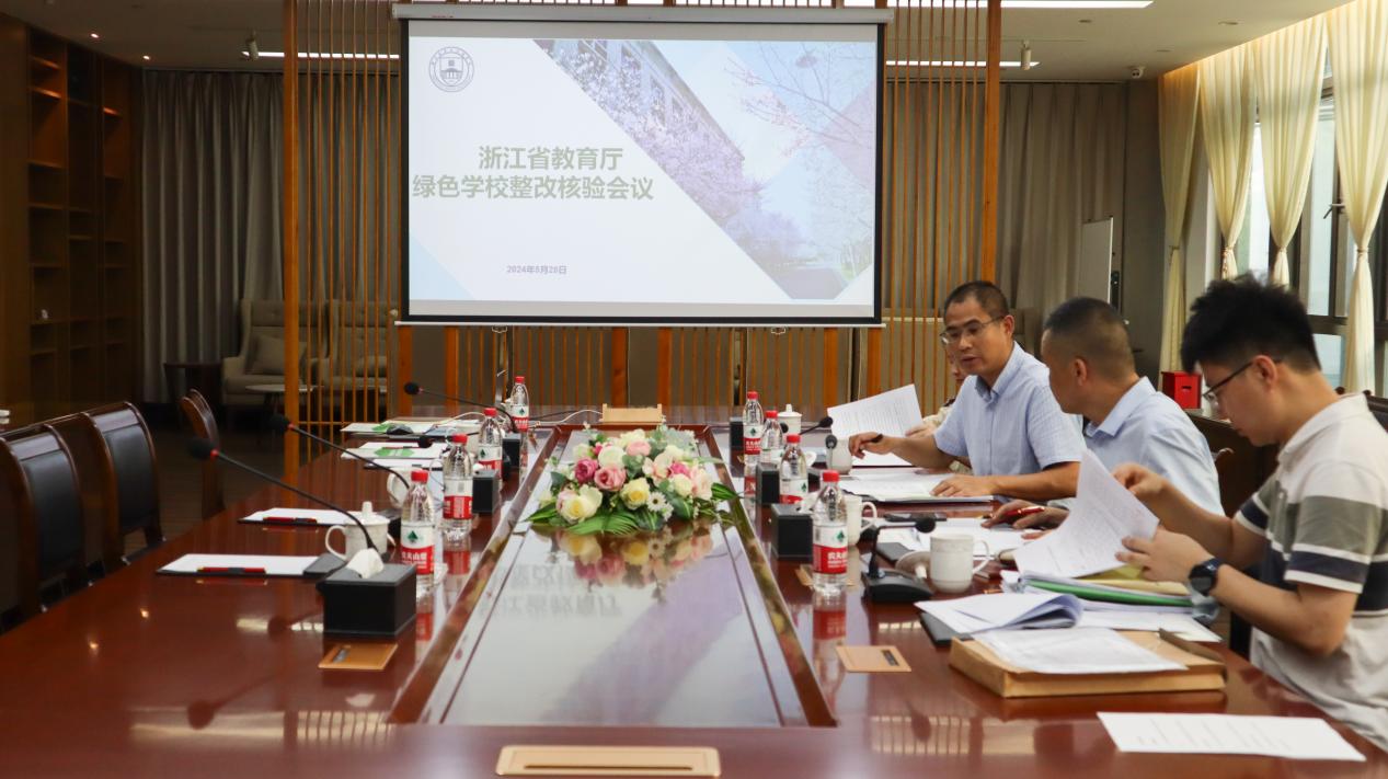 5月28日下午,浙江省绿色学校(高等学校)创建整改核验专家组张飞组长一行来校开展整改核验工作。学校特聘教授费君清致欢迎辞,常务副校长魏小琳主持核验汇报会,绿色学校创建工作领导小组成员以及后勤保障处相关人员参加核验汇报会。