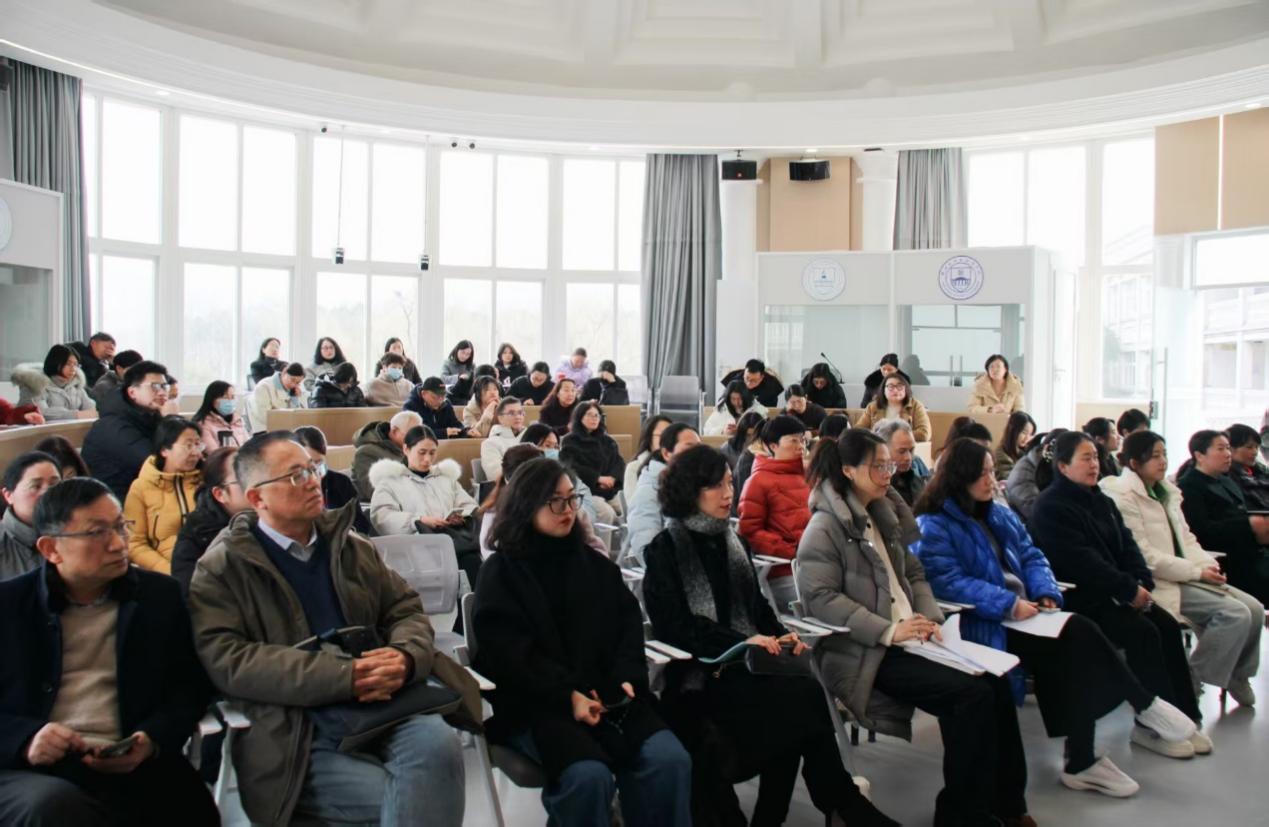徐英副院长回顾了过去一年学院在学科建设和科研方面取得的成绩,并对下一阶段相关工作提出要求。他指出,尽管取得了诸多成果,但面对未来,英语学院需继续努力保持学术活力与发展动力。他强调紧跟国家战略和学校发展的重要性,并指出在人工智能快速发展的背景下,老师们应将个人发展与学院发展紧密结合,主动参与到学院各项科研活动,积极围绕学校学院发展开展教科研工作,尤其要注重运用新技术提升教学和科研能力。