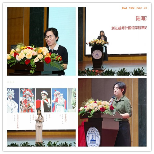 本次活动还举行了绍剧多语种国际传播短视频大赛获奖作品展演环节,现场展示了德语、俄语、西班牙语与葡萄牙语专业的同学们各自精心制作的推介绍剧的短视频。各语种的视频都可谓匠心独具:德语组的视频用德语介绍了绍剧的艺术特点与发展历程;俄语组的视频实现了先进的技术手段与悠久的绍剧传统、精彩的绍剧表演与流利的俄语介绍之间的完美融合;西班牙语组的同学深入绍剧表演后台,通过记录舞台表演与演员访谈相结合的形式,用西班牙语展示了绍剧表演的精彩、绍剧演员的敬业精神;葡萄牙语组的同学紧密围绕“国际传播”的主题,将绍剧与西方的歌剧进行了对比,将绍剧的独特魅力展现在观众眼前。在展演环节结束后,参加活动的领导与嘉宾为在此次短视频大赛中获奖的同学及其指导教师颁发了获奖证书。