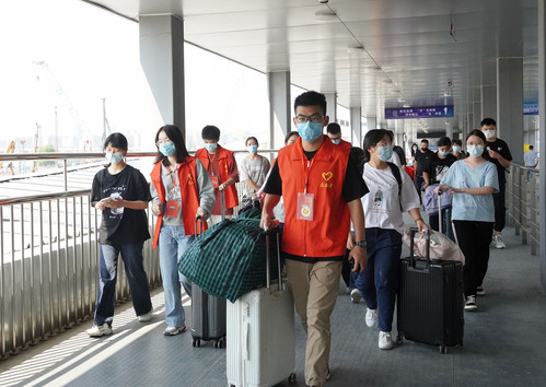 不只校内,校外的志愿者也都坚守在自己的岗位。我校共派出83位志愿者守候在“三站一中心”——铁路绍兴北站、绍兴(火车)站、绍兴公路客运西站、绍兴客运中心,为新生提供出站引导、身份核验、行李搬运、乘车返校等服务。