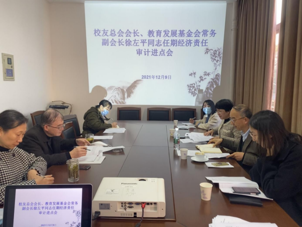 2021年12月9日,校友总会会长、教育发展基金会常务副会长徐左平同志任期经济责任审计进点会在稽山校区校友总会会议室举行。会议由费君清教授主持,校友总会全体人员、审计组成员参加会议。