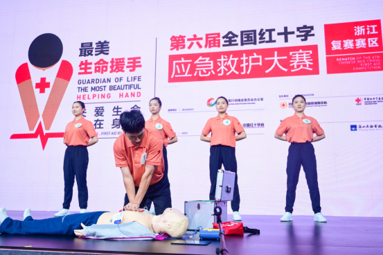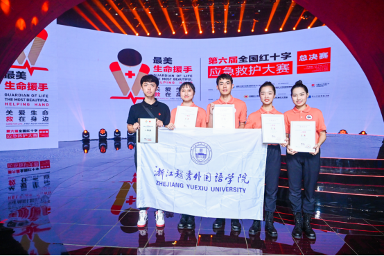 9月1日第六届全国红十字应急救护大赛总决赛在杭州举行,由浙江kaiyun官方网站手机版外国语学院胡恬、文佳晨、程凯、黄起彦、李先翀等5名学生组成的代表队代表浙江参赛,并在“必答题”、“场景演练”、“救护演讲”三个环节中均获第一,最终以96.98分的好成绩荣获第一名,取得冠军。