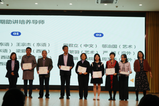 首先,教师发展中心主任费群蝶从六个方面总结了第九期助讲培养工作经验,指出了存在的不足以及改进的方向。她提出,要继续贯彻院校两级相互配合,共同支持青年教师的专业发展,加强考核、层层把关,在制度上明确规范导师的培养任务和青年教师的学习目标,切实保障青年教师助讲培养工作落实到位。30位青年教师通过第九期助讲培养考核,如期取得结业证书。各教学单位分管领导为他们颁发了结业证书。
