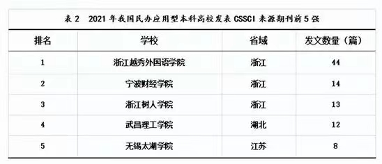 5月,《中国应用型本科高校2022年度综合竞争力报告》正式发布。报告显示,我校在民办应用型本科高校CSSCI来源期刊论文发表情况中,以绝对优势位居第一名。