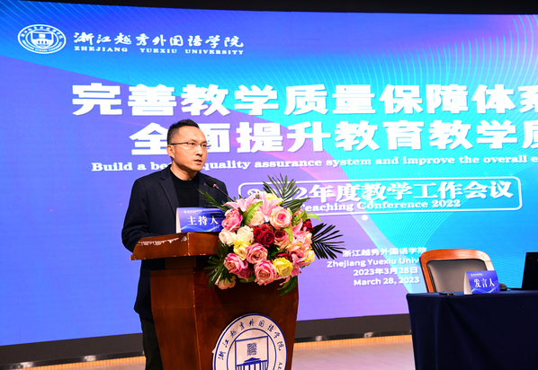 在会议第二阶段,副校长陈文涛围绕“学校教育教学改革”、“教学过程管理”、“外语+战略”深化、“一流专业课程建设”、“人才培养质量”等方面做了2022年度教学工作总结。他部署了学校2023年教学工作7个重点:第一,做好民办教育认证,全面推进审核评估各项准备工作;第二,加强顶层设计,扎实做好2023版人才培养方案修订工作;第三,聚焦新文科建设,全面提升专业和课程建设水平;第四,加强教学过程管理,持续推进教学满意度提升工作;第五,深入推进产教融合,完善政校企协同育人机制;第六,创新人才培养模式,做精做细卓越人才培养工作;第七,技术赋能,充分发挥移动学习技术对提升学习效率的促进作用。