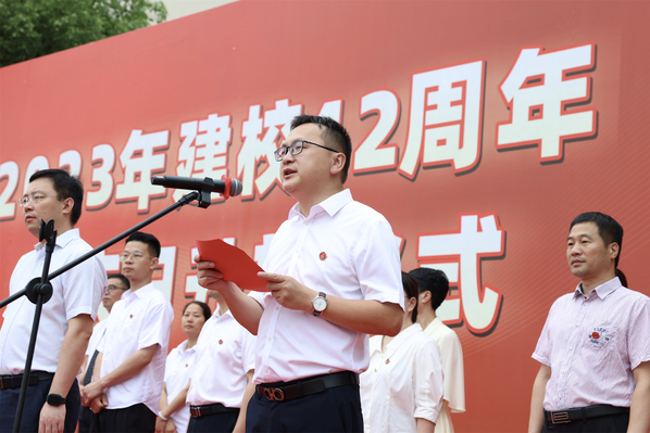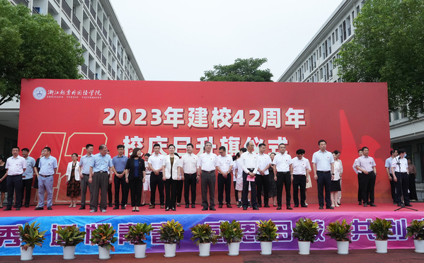 2023年6月12日是浙江kaiyun官方网站手机版外国语学院建校42周年校庆日。12日上午,学校在镜湖校区隆重举行建校42周年校庆日升旗仪式。校长叶兴国,特聘教授费君清、常务副校长魏小琳,副校长陈文涛、葛金玲,党委副书记、纪委书记高志栋和校友会会长徐左平,各处室、二级学院负责人,以及教师代表、外籍教师代表、校友代表、学生代表等500余人参加升旗仪式。费君清教授主持仪式。