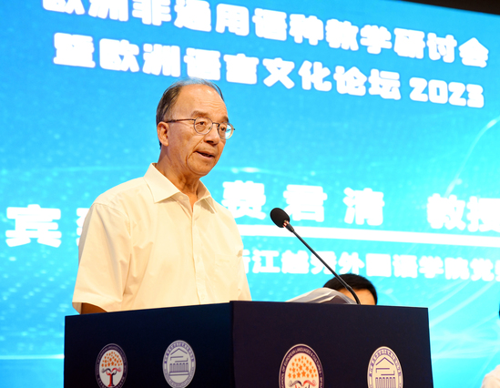 费君清对来自全国欧洲语言文化研究的各位学者表示热烈欢迎。他表示,在“中国式现代化与欧洲语言文化研究”领域进行深入学术探讨和实践总结,具有十分重要意义。赵刚在致辞中指出,在百年未有之大变局背景下,中欧关系具有极端重要性和极度复杂性,处理好中欧关系具有极其重要意义;2023年正值“一带一路”倡议提出十周年,中国文化日益受到尊重和欢迎;进一步深化双边关系,需要高质量高水平的欧洲非通用语人才、欧洲国别区域研究、对欧文化传播和人文交流活动。