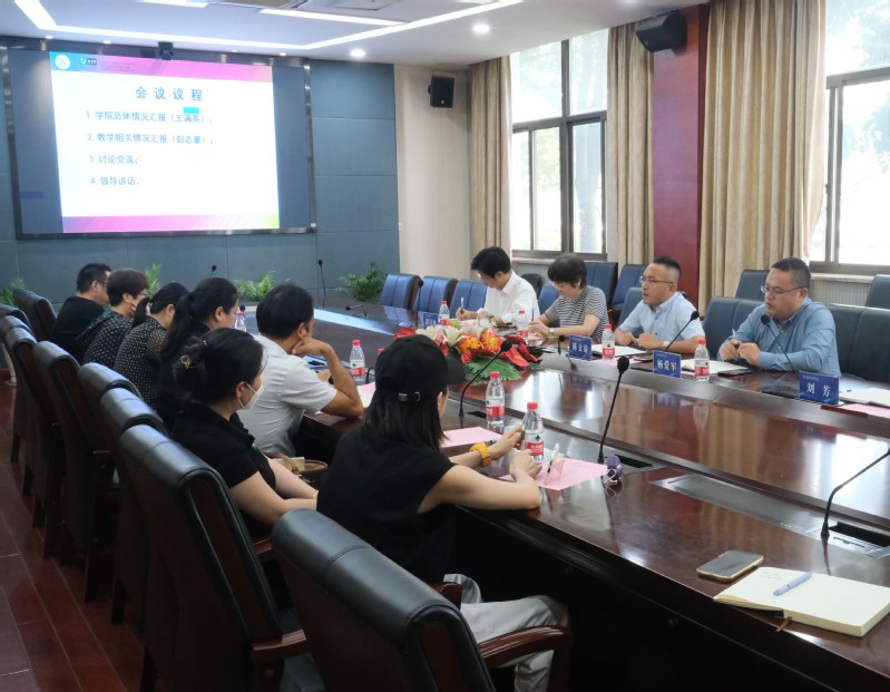 王满英从学院基本现状、学生学业情况、师资队伍建设、双学位率和新专业申报等方面做了汇报。其他成员就学院国际英语测试推进、教学质量管理、学生管理等方面进行了交流。
