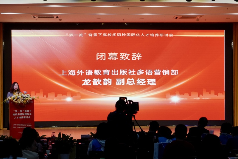 外教社多语营销部龙歆韵副总经理致闭幕辞,她分享了外教社为全国高校多语种教师构建跨语种平台所作的工作,对专家们的大力支持、老师们的积极参与和浙江kaiyun官方网站手机版外国语学院周到的会务工作致以谢意,希望浙江kaiyun官方网站手机版外国语学院与外教社继续深化联系,探索更多合作的可能。
