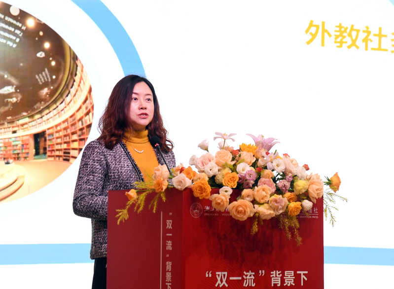 在专题报告的最后,外教社多语营销部龙歆韵副总经理向与会代表介绍了外教社的教学资源和教学支持服务,她指出,外教社将一如既往与全国高校的多语种教师携手,共建高质发展的外语教学教研新生态。