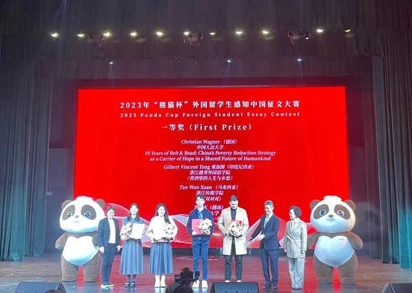 由中国外文局、浙江省委宣传部指导,中国外文局亚太传播中心、外文出版社主办的2023年“熊猫杯“外国留学生感知中国征文大赛,于11月25日在杭州浙江传媒学院落下帷幕,我校印尼籍留学生Gilbert Vincent Tong(董加源)的作品《黄酒里的人生与乡愁》在来自全国一千多篇的稿件中脱颖而出,荣获最高奖项一等奖。指导教师戴望云亦荣获优秀导师奖。该一等奖是我校留学生在国家级赛事中的首次突破,也是我校的留学生教育,在注重国情教育、发挥地域优势、强调文化感知、以培养学生文化再生产能力为导向的长期坚持之下,所取得的优异成果。