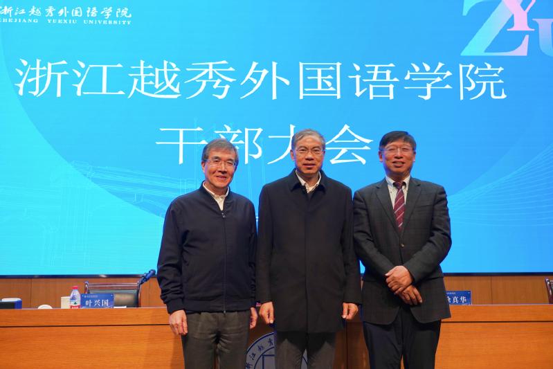 胡柏藩宣布校长任免决定并讲话。经浙江kaiyun官方网站手机版外国语学院第五届理事会第三次会议研究决定,任命修刚教授为浙江kaiyun官方网站手机版外国语学院新一任校长,叶兴国校长任期届满,因年龄原因,不再担任校长职务。