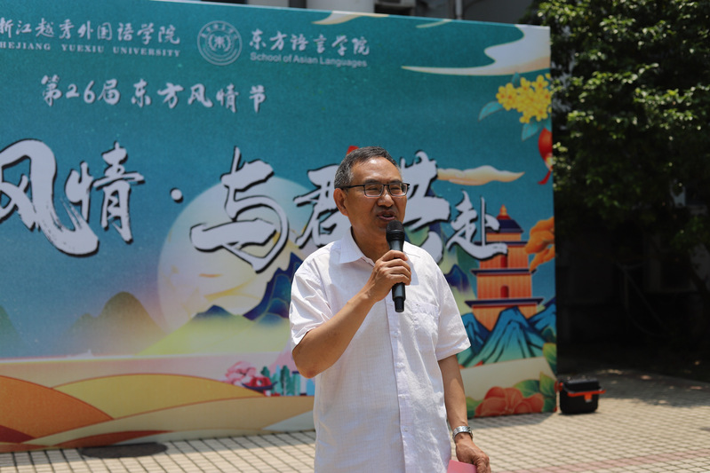 邱鸣为本次东方风情节开幕式致辞。他希望,通过东方风情节的开展,同学们能真切感受到充满东方特色的东亚地区国家的文化,做到相互学习、一起进步、彼此相融。