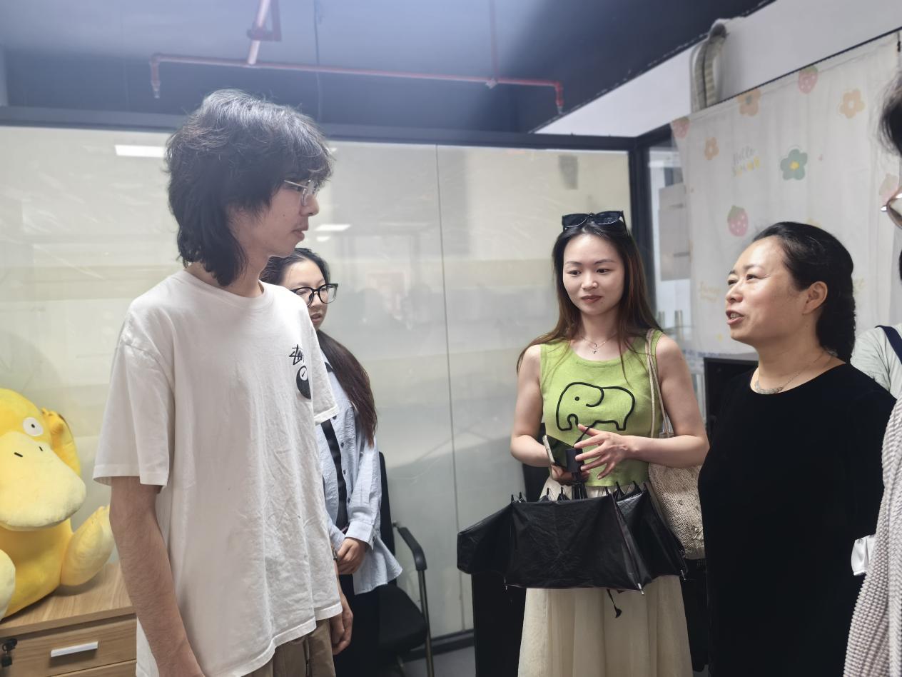 高琴波代表学校对官珊珊一行来校调研指导表示热烈欢迎,单胜江向调研组一行介绍了我校基于产教融合多语种跨境电商特色,校企协同助推大学生就业创业创新的做法与成效。官珊珊一行深入了解园区学生的创业进展和创新实践。在参观过程中,并与多个创业团队进行了亲切交流,详细询问了他们的项目构想、市场定位及发展计划。
