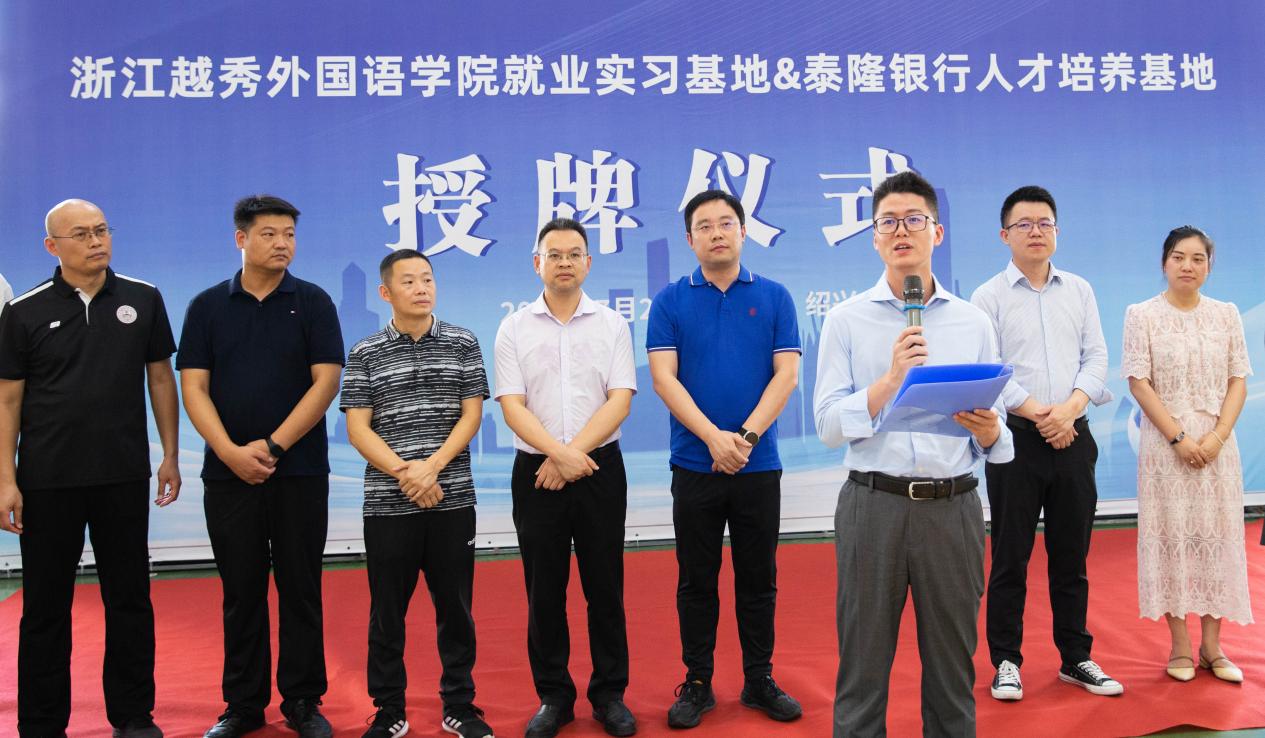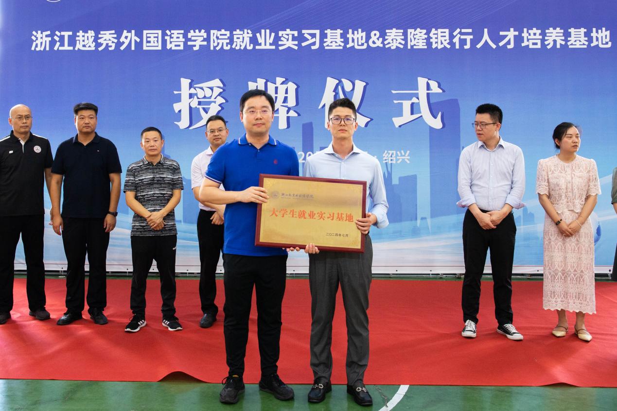 7月20日下午,我校与泰隆银行绍兴分行就业实习基地和人才培养基地授牌仪式在稽山校区风江体育馆举行。泰隆银行绍兴分行行长李阳、副行长戴海斌、各职能部门领导、绍兴各区县支行行长代表,我校党委副书记兼纪委书记高志栋、学工部部长符兴华、保卫处主持工作副处长俞志军、体育部副主任李德奇、国际商学院院长杨小平、副院长王龙、党委副书记凌玮以及双方代表400余人参加仪式。仪式由泰隆银行绍兴分行办公室主任黄居坚主持。