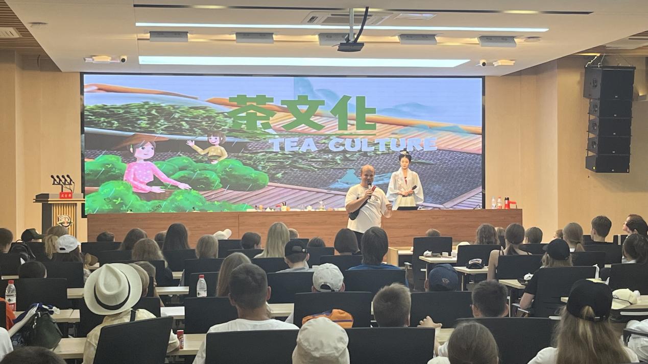 7月7日俄罗斯游学团的学生们参观茶园,了解茶叶的种植、采摘和制作过程,并亲自尝试采茶和品茶,体验了中国的茶文化。在杭州野生动物园,憨态可掬的大熊猫俨然成为了俄罗斯师生眼中的大明星,大家纷纷拍照留影。