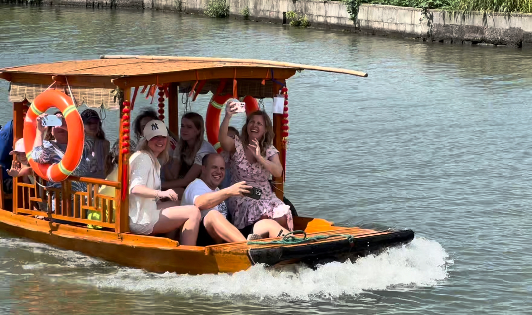 7月12日,俄罗斯游学团的学生们从绍兴出发,抵达苏州山塘街,他们沉醉于古典园林的精巧布局与诗情画意之中,感受着古代文人墨客的浪漫情怀。他们还参观了华谊兄弟电影乐园、苏州中心等,感受现代都市的繁华。
