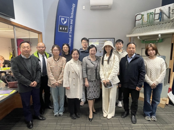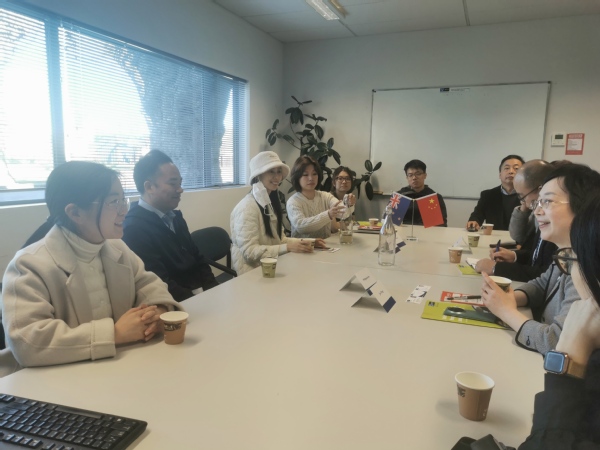 我校东部理工数据科学与传播学院副院长陈初旦向唐筠参赞介绍了两校专业合作、课程建设、师生交流等情况。唐筠表示,中外合作办学促进了教育资源的优势互补,为双方提供了高水平教学科研合作平台。希望我校能继续深化与新西兰东部理工学院的合作,共同培养更多具有国际竞争力的高素质人才。唐筠也祝愿老师们在新西兰学有所成。
