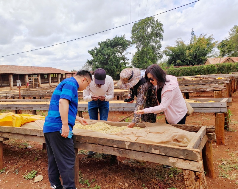 农业、服务业与工业构成了肯尼亚经济三大支柱。大多数农场距离首都内罗毕仅100公里左右,加之熟练劳动力供应充足,有利于全年生产高质量花卉、水果和蔬菜。我校代表团调研了位于首都内罗毕远郊的NATONT KARUNGURU咖啡农场。该咖啡农场由澳大利亚人创办于1928年,肯尼亚独立后卖给当地人经营。虽然肯尼亚毗邻最正宗的咖啡——阿拉比卡咖啡的原产地埃塞俄比亚,但迟至20世纪初,肯尼亚才开始发展咖啡种植业。肯尼亚的咖啡出口基本只限于阿拉比卡咖啡一种。肯尼亚咖啡芳香、浓郁、带有水果风味,口感丰富,已成为肯尼亚创汇的支柱产业之一。肯尼亚咖啡豆有严格的分级,根据大小、形状与硬度,区分为五个等级,最高级为PB,其次为AA++、AA+、AA、AB。