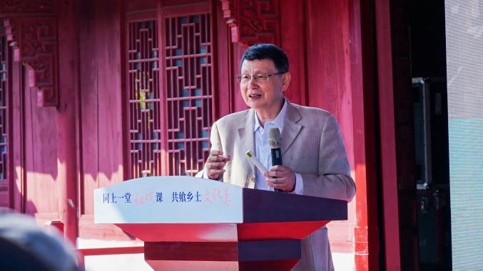 安桥头村作为社戏的发源地,也是鲁迅作品中乡土文化的灵感源泉。活动伊始,随着鲁迅先生的童年故事缓缓展开,一场关于“社戏”的文化盛宴正式拉开帷幕。主讲专家黄教授通过生动的讲述,引入了“社戏”主题,为学子们勾勒出绍兴社戏的历史和文化背景,让在场的学子们仿佛穿越时空,回到了鲁迅先生的童年时代。教授还绘声绘色地讲解了《社戏》一文的具体内容,分析了鲁迅先生三次看戏的经历。同时,他指出鲁迅对传统戏曲的态度是既批判又肯定的。这些内容帮助学子们更全面地理解了鲁迅作品中的复杂情感和文化视角。